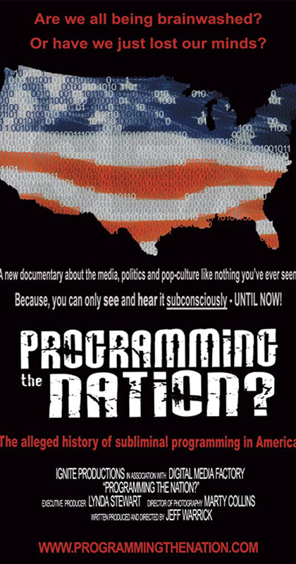 Directed by Jeff Warrick. With John B. Alexander, Richard Beggs, Nick Begich, August Bullock. According to many authorities, since the late 1950's subliminal content has been tested and delivered through all forms of media, at an increasingly alarming rate. "PROGRAMMING THE NATION?" examines the purported uses, influences and potential subconscious side-effects of what's going on beneath the surface of advertising, film, music and political propaganda. Even the US military has been ...